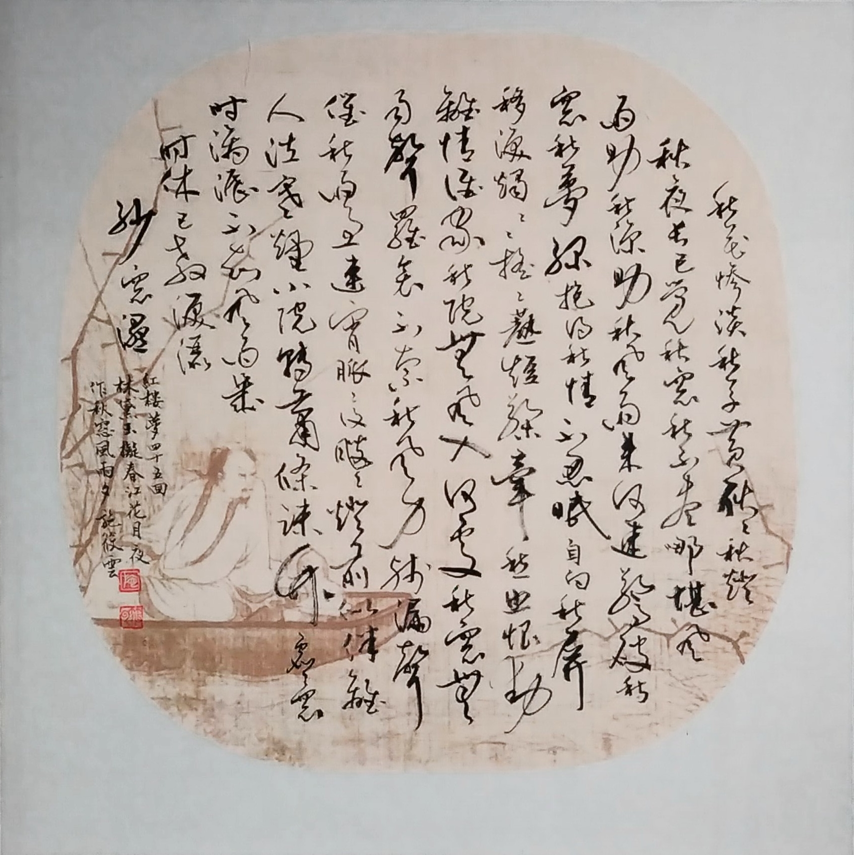 字濤玉,別號蘭谿女史,一九五五年生,玄奘大學中文研究所博士,民國六十五年隨薛平南教授習書,諸體靡不鑽研,頗活躍於書壇,為中國標準草書學會、盤石書會、十秀雅集書會、台灣女書法家學會領導骨幹,經常應邀書法專題講座、學術論文發表,屢次參與國內外重要交流展覽。