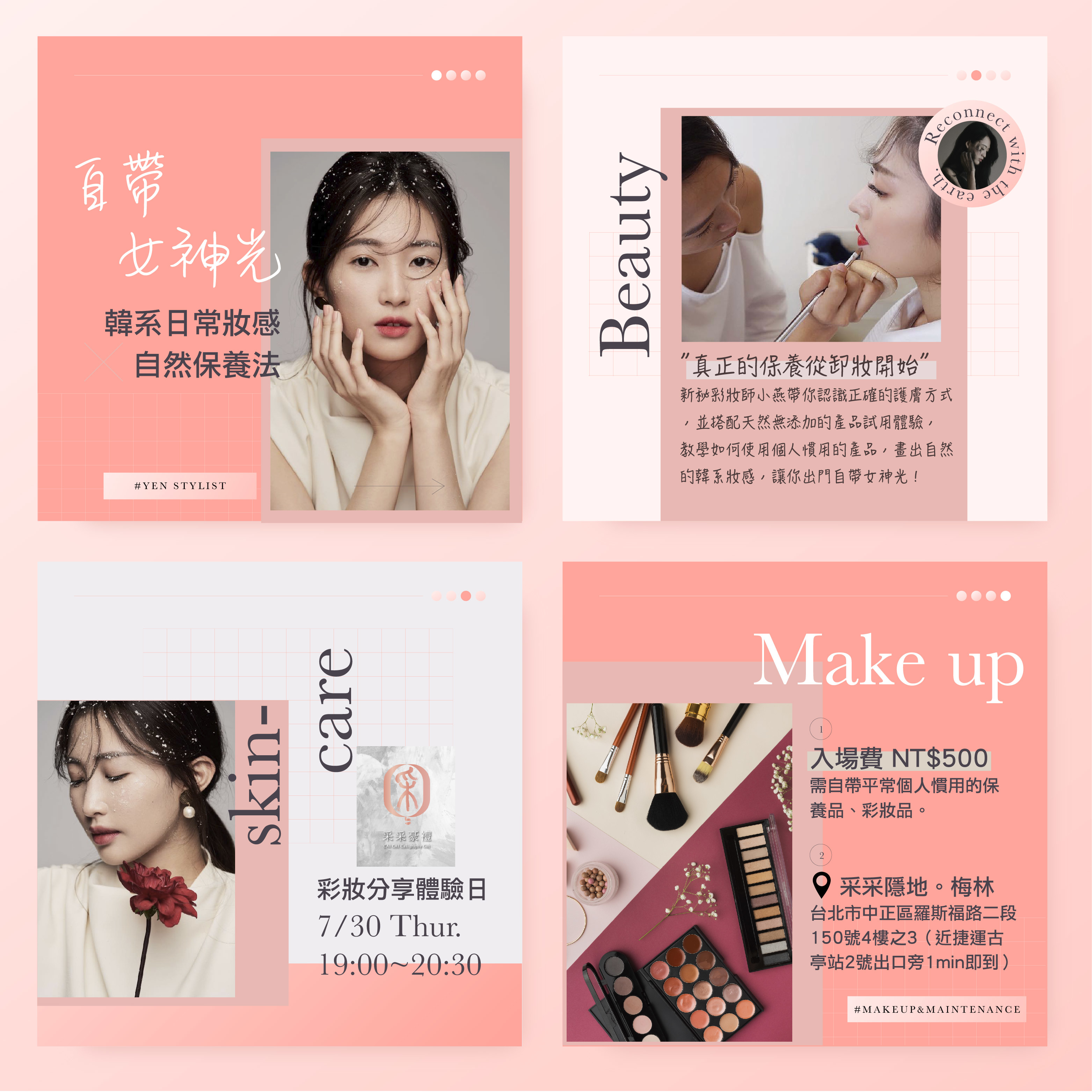 📍費用:NT$ 500 (需自帶平常個人慣用的保養品、彩妝品)