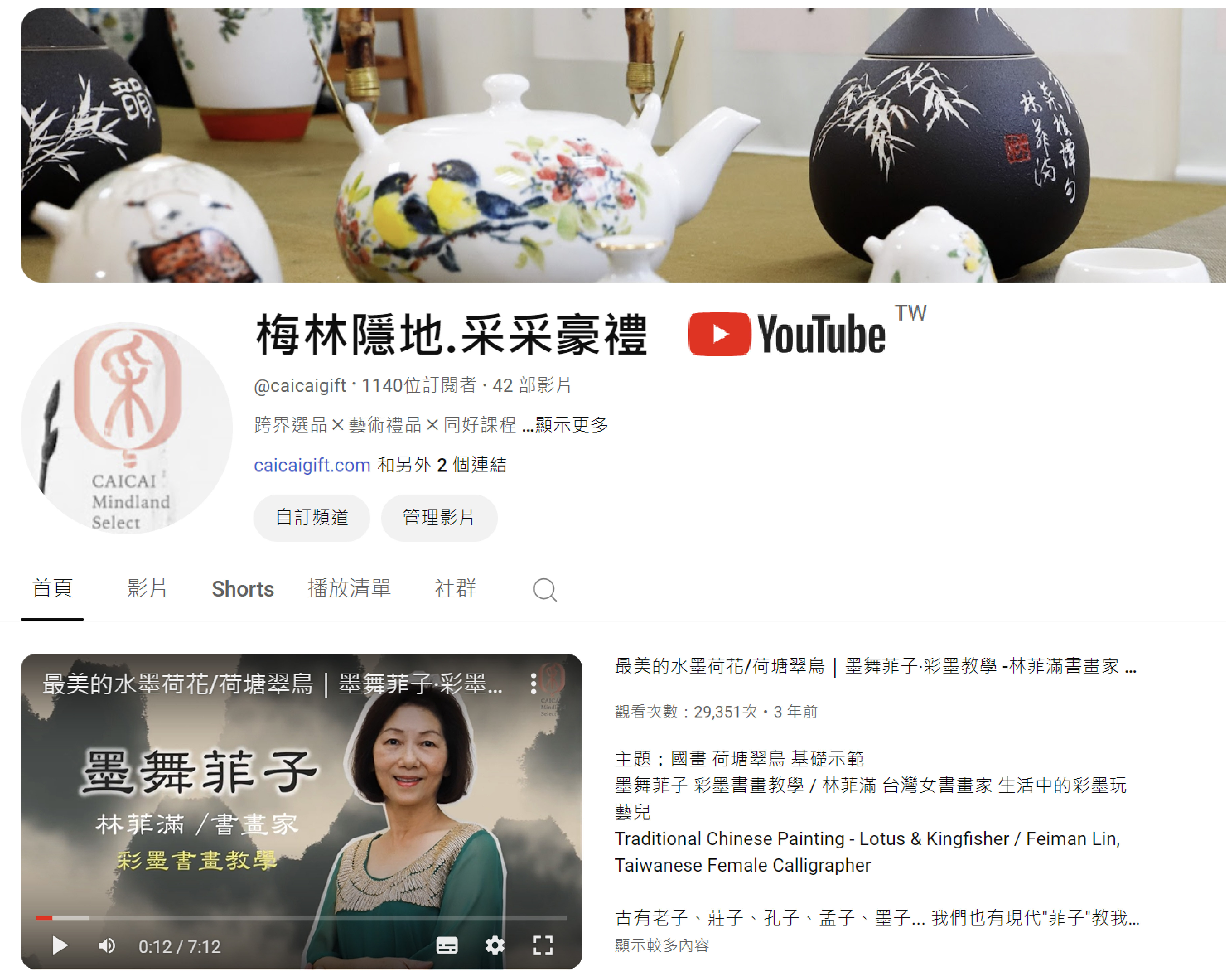 墨舞菲子-林菲滿書畫藝術家、以毛筆讀文學線上課程施筱雲教授、靈性茶藝師梅林夫人等駐站藝術家,在線與您分享豐富的創作與觀點!
